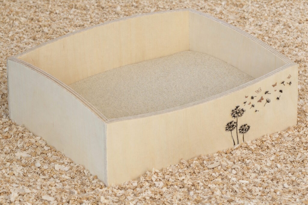 Wenn der Hamsterstall groß genug ist, könnte das Laufrad wegbleiben. Wer regelmäßig reinemacht, kann auf die Ecktoilette verzichten. Diese wird ohnehin nicht automatisch angenommen. Aber das Sandbad muss zwingend mit in den Hamsterstall. Das tägliche Baden im feinen Chinchillasand tut den Tieren nicht nur gut. Sie pflegen damit ihr Fell und haben weniger Probleme mit Parasiten oder Hautkrankheiten.